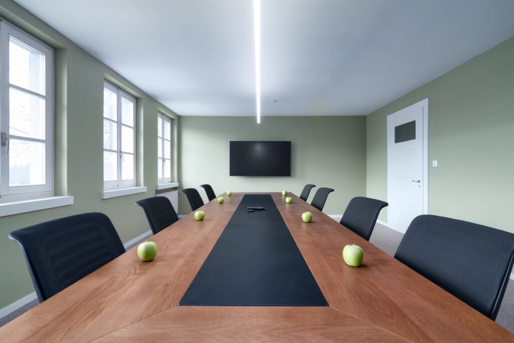 Der grösste Meeting-, Seminar- und Bankettraum «Widnau» bietet Platz für bis zu 50 Personen. Hier finden Sie genügend Platz für Ihre Ideen, zum Feiern, für Workshops und vieles mehr. Der Raum «Heerbrugg» ist ein Boardroom, der sich perfekt für Geschäftsleitungssitzungen, VR Meetings und Meetings eignet. Er bietet Platz für bis zu 8 Personen und ist mit einem professionellen Videokonferenzsystem ausgestattet. Für bis zu 12 Personen eignet sich der Raum «Balgach» ideal für Workshops, Teamsitzungen und Meetings.